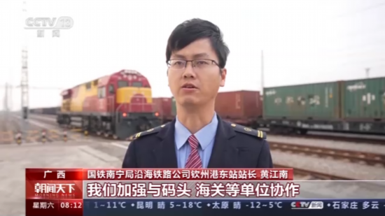 国铁南宁局沿海铁路公司钦州港东站站长 黄江南:我们加强与码头、海关等单位的协作,保证年货班列随到随吊、随装随出。