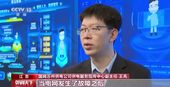 国网苏州供电公司供电服务指挥中心副主任 王亮:当电网发生了故障之后 ,它可以调用它后台的人工智能和大数据技术,然后判断出它的故障点所在 。