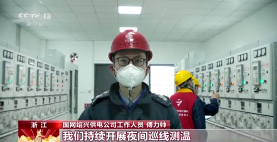 国网绍兴供电公司工作人员 傅力帅:近期寒潮降临,我们持续开展夜间巡线测温、人工观冰等工作,同时加强与气象部门联系。