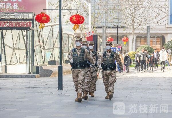 春节期间,武警江苏总队官兵巡逻官兵在南京市新街口、鼓楼广场和各大旅游景点,确保人民群众的生命财产安全。