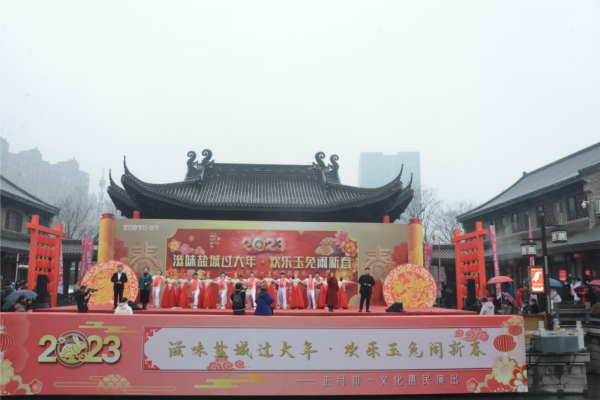 1月22日,市委宣传部、市文明办、市文化广电和旅游局等单位联合举办“滋味盐城过大年·欢乐玉兔闹新春”文化惠民演出活动,通过音乐、舞蹈、杂技、器乐等多种艺术形式,丰富群众的精神文化生活,营造欢乐祥和的佳节氛围。