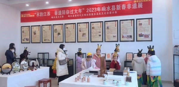 春节期间,响水县文化馆举办“水韵江苏 非遗陪你过大年”新春非遗展活动,活动中,安排少儿文艺汇演、趣味灯谜有奖竞猜活动。为广大市民群众送上新春文化大餐。
