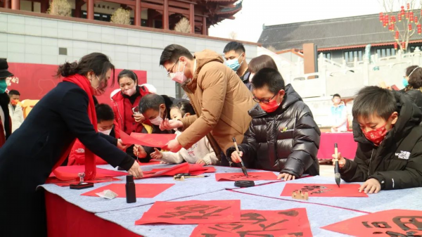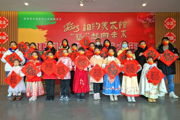 春节期间,建湖县美术馆举办“相约美术馆 ‘艺’起向未来”活动,家长和小朋友一起书写对联和福字,用传统技艺拓印“中国福”,传承传统文化。