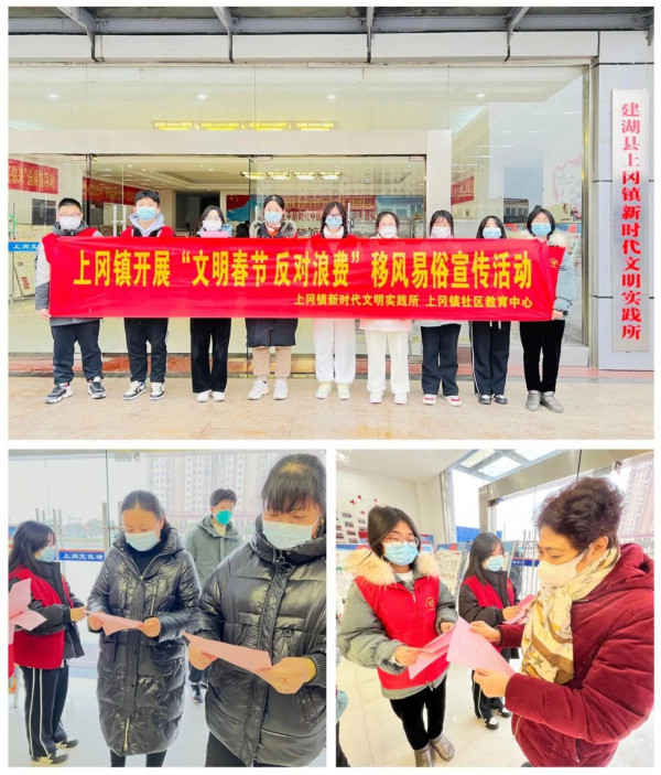 春节期间,建湖县上冈镇新时代文明实践所、镇社区教育中心开展“文明春节·反对浪费”新时代文明实践主题宣传活动。活动中,志愿者向广大群众发放倡议书,引导居民反对浪费、崇尚节约,树立文明新理念,弘扬时代新风。