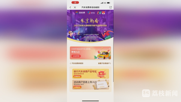 与此同时,为了促进汽车销售,省内多地政府也于近期,发放了专属汽车品类的消费券。在无锡,商务部门针对今年1月22日之后,在市区活动商户订购成交价10万元(含)以上的家用新能源汽车的个人消费者,最高补贴3000元,市民看车时的成交意愿更大了。
