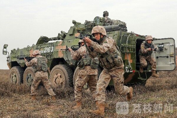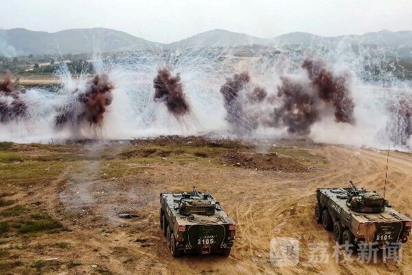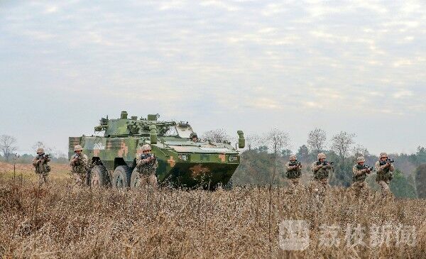 近日,第72集团军某旅利用山区复杂地形条件,构设逼真的战场环境,组织开展跨昼夜加强装甲步兵连红蓝对抗战术演练。