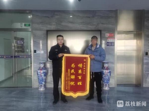 今天(1月31日),记者了解到,1月29日,扬州市民赵先生将一面印有“情系百姓,为民解忧”的锦旗送到扬州市公安局广陵分局李典派出所民警陈培恒、卜扬的手中,感谢民警帮助其找回走失多日的父亲。