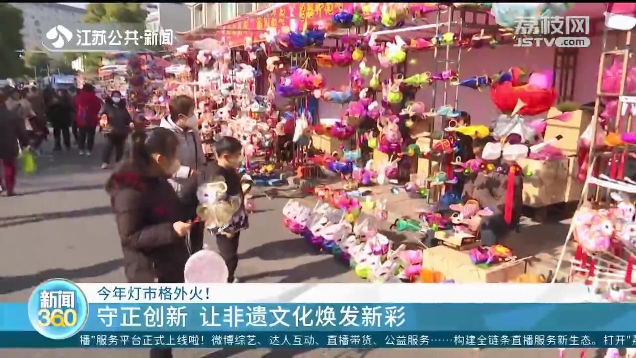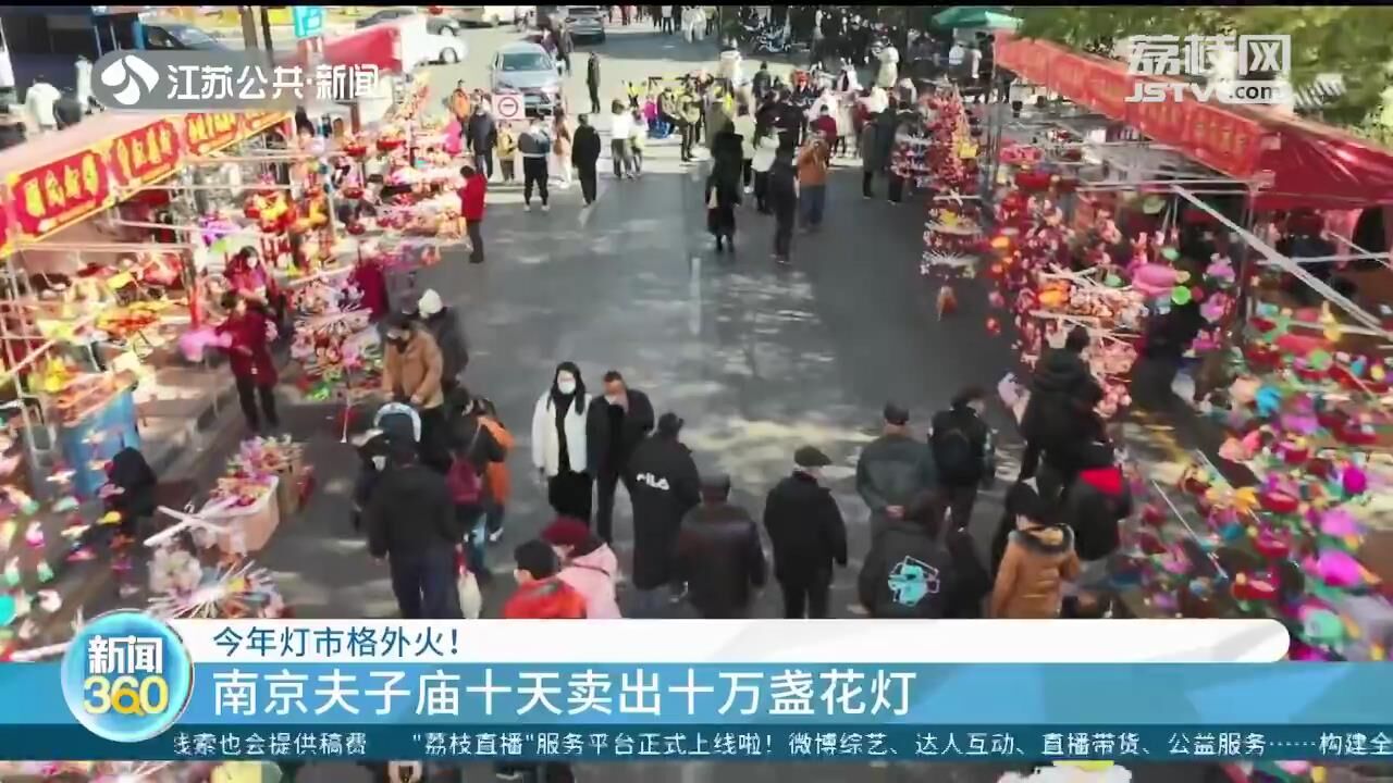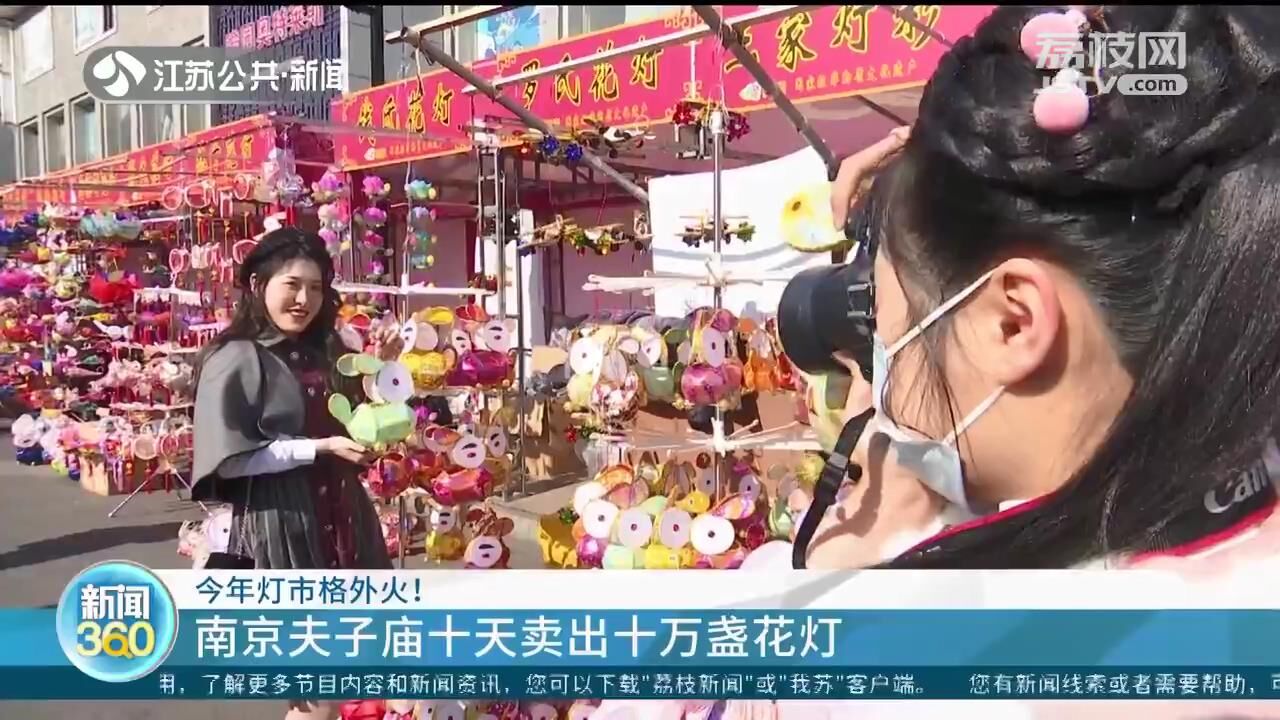 60多个摊位沿着道路两侧依次摆开,数百种花灯争奇斗艳,热闹非凡。逛灯市、拍美照,今年春节期间,每天都有上万人来这里打卡,火爆的人气带火了花灯的销售。秦淮灯彩艺人刘玉芳告诉记者,今年准备了1500盏大小各种各样的灯,现在销售得差不多了。今年的兔儿爷灯有京剧元素在里面,顾客很喜欢,每天都卖出上百盏。