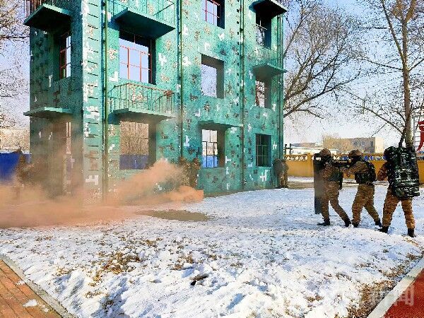 “接上级通报,现有一名‘歹徒’劫持一名‘人质’,藏匿于一废弃屋内,上级命令我小队进行解救……”近日,一场模拟实战环境下的“废弃房屋反劫持”演练在武警黑龙江总队大庆支队训练场正式打响!