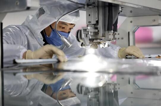 1月5日,在合肥市瑶海区长三角数字科技示范园,合肥统旭智慧科技有限公司的员工在智慧显示屏生产线上作业。新华社发(解琛 摄)