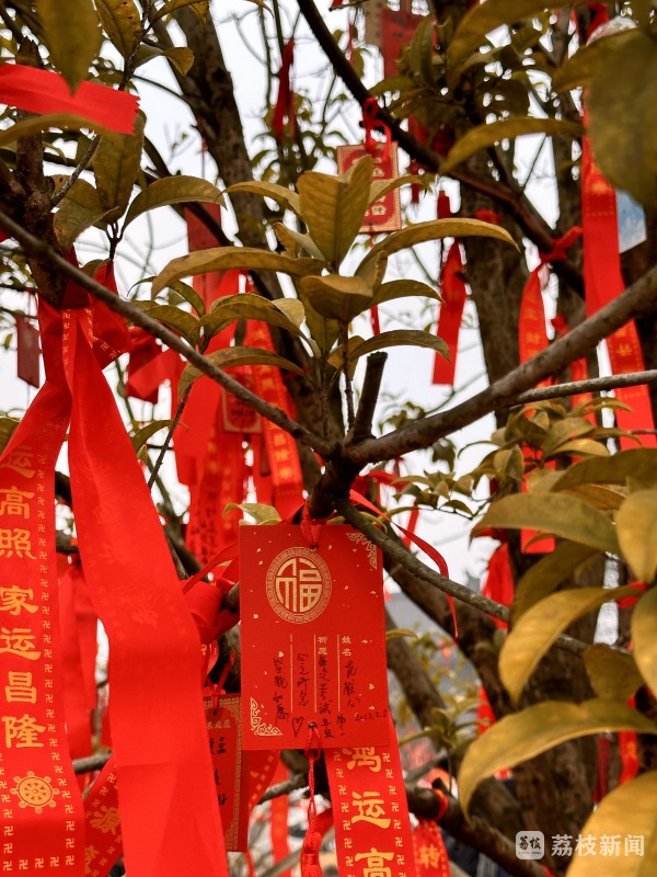 游子山顶祈福园内,前来“晒霉”的居民游客在此许下新年愿望并将领取的许愿牌悬挂于园内,一块块许愿牌寄托的是人们对新一年美好生活的热切期盼。