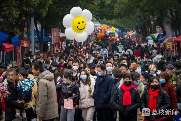 正月十五登游子山“晒霉”,早已成为高淳人闹元宵不可或缺的环节。随着防疫措施优化调整,一度暂停的“晒霉”活动再次重启,人们元宵佳节登游子山,“晒霉”、祈福、赏美景、逛市集的热闹景象又回来了。“因为疫情关系,有几年没来游子山‘晒霉’了,今天看到现场这么热闹,熟悉的过节味道又回来了,非常开心。”高淳居民孔先生说。来自南京的游客杨女士表示,听闻今年高淳“晒霉”祈福活动从线上又回到了线下,便与家人专程驱车来到游子山感受这一地方民俗,“登高祈福,一边看美景,一边‘晒霉’,既放松身心,又有美好寓意,一路上还有很多互动体验、表演,很有意思。”