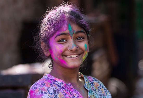 2020年3月10日,在印度新德里,一名女孩参加洒红节庆祝活动。新华社发(贾韦德·达尔摄)