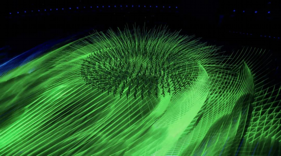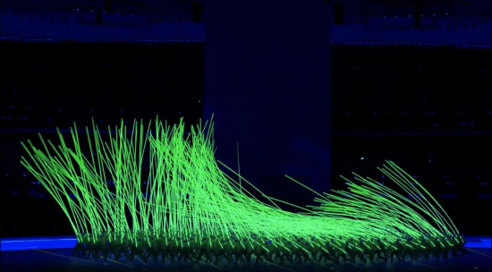 393人手持10米长的发光杆,演绎春花绽放。40多版动态预演,9250多帧最终动态视效。实现由裸眼视效到物理空间再到实景表演三者的完美结合。
