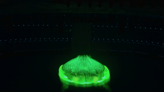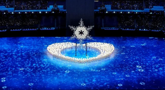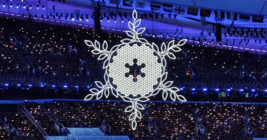 50万个发光点编程将雪花点亮,一朵朵“小雪花”连接成一朵“大雪花”,各参赛国家和地区名字在其间联结闪耀,全世界的雪花都汇聚于此,2022北京冬奥会开幕式的火炬台由此而生。
