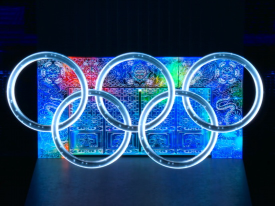 冰雪五环是全球最大的立方体发光装置。它链接物理装置、五维影像、激光追踪、舞美编排等要素,也是开幕式中最具挑战性的多维度创新环节。
