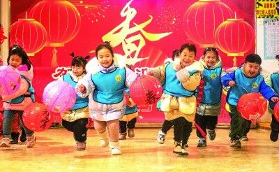 湖南省永州市道县西洲街道的小朋友提着灯笼,喜迎元宵节。蒋克青摄/光明图片