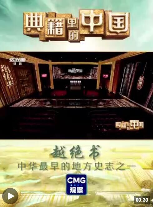 中央广播电视总台大型文化节目《典籍里的中国》第二季第五期《越绝书》,开启这部内容扣人心弦却充满谜团的“奇书”“绝书”,用地方志这一全新打开方式,让历史记载与山川河湖中孕育传承的生命轨迹逐渐重合,让古今相通的智慧与热血在我们心中久久回荡。