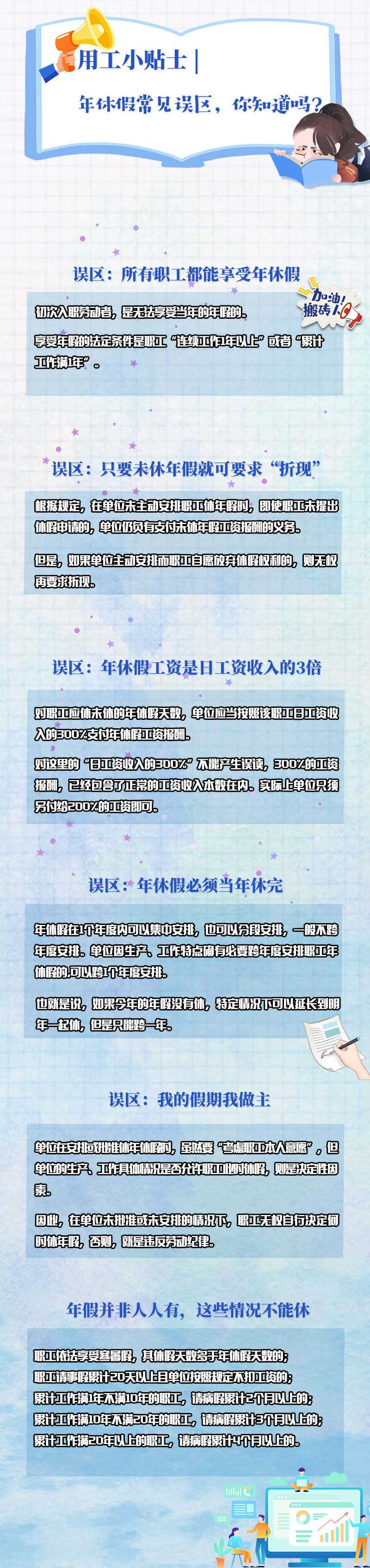 每到岁末年初,带薪年假都会成为一个热点话题,由休带薪年假引发的劳动争议案件也逐年增多。对于带薪年休假,很多职工会陷入一些认识误区……入职时间长短都可休?我的假期我做主?未休年假能否“折现”?关于年休假的那些事儿,你都搞清楚了吗?