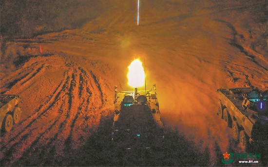 夜间对“敌”目标实施火力打击。