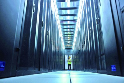 贵州省贵阳市,工作人员在数据机房内巡检。 新华社发