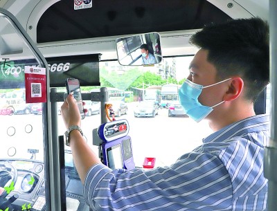 在重庆市璧山区,乘客使用数字人民币乘坐公交车。新华社发