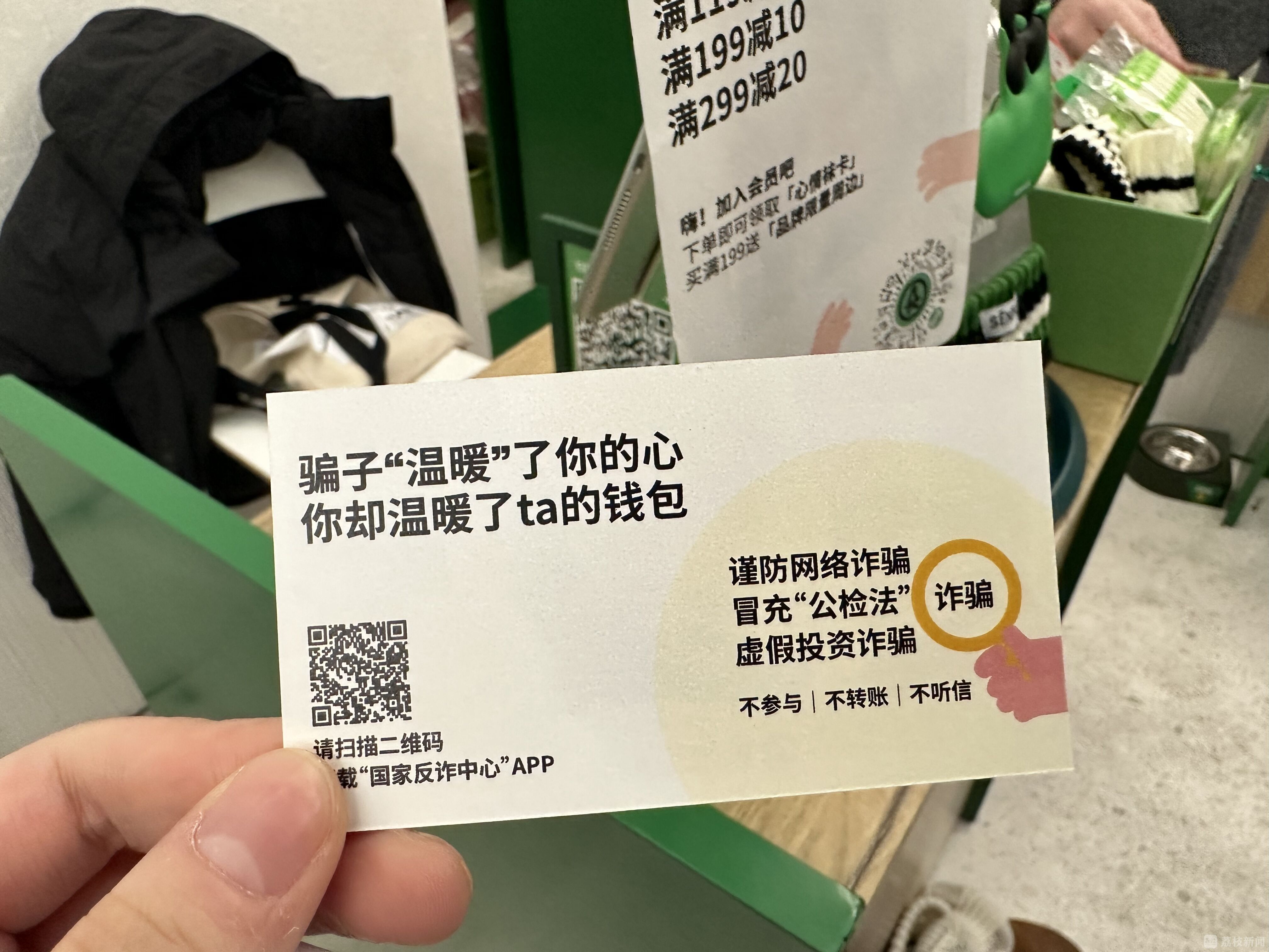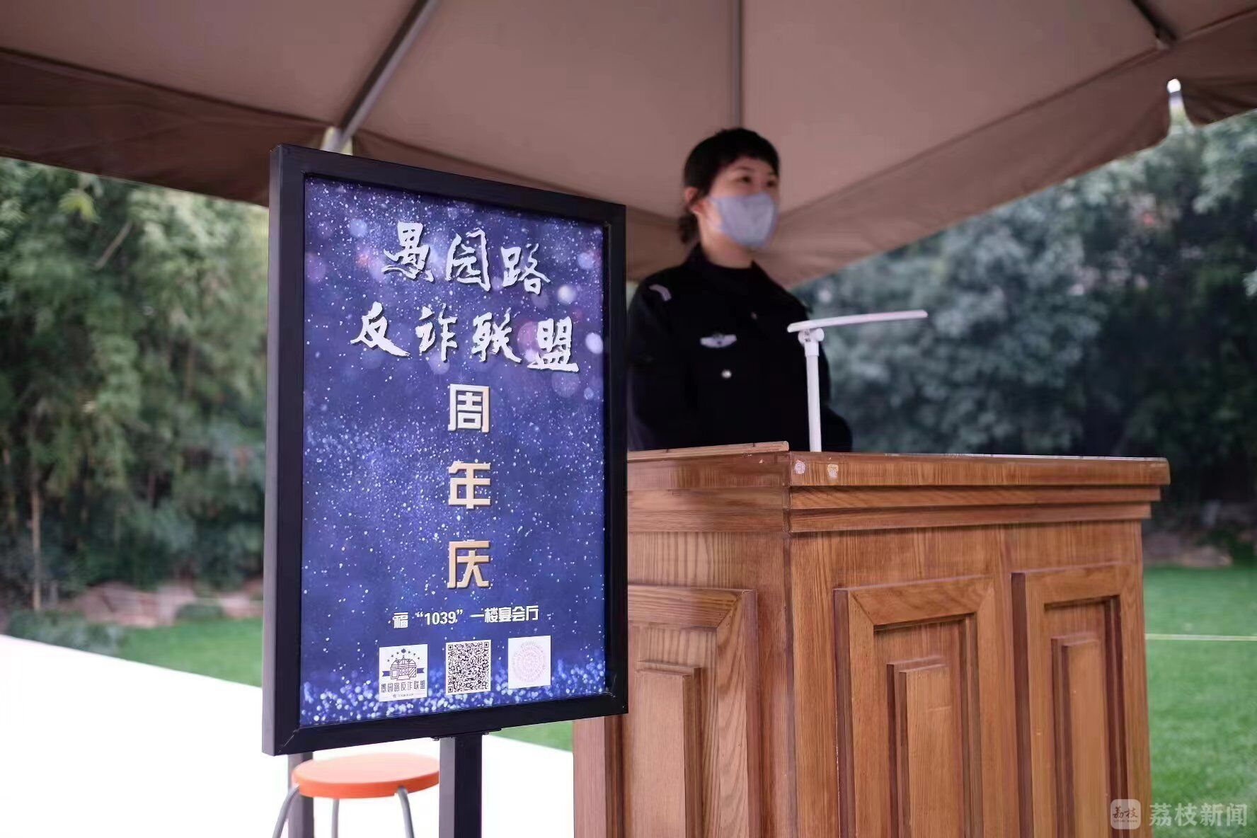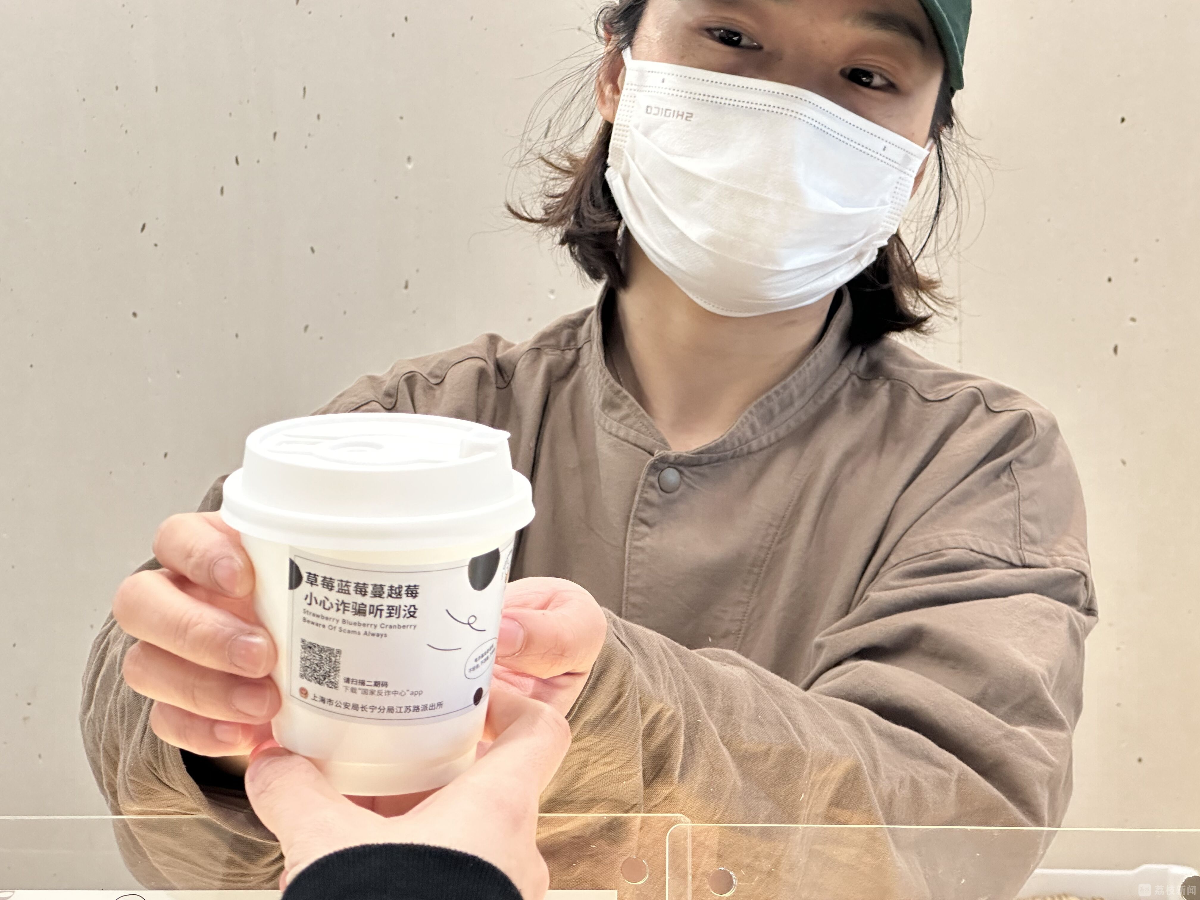 2月8日上午,“愚园路反诈联盟”周年庆活动在上海市长宁区愚园路上举行。活动中,上海市公安局长宁分局江苏路派出所向31家联盟成员单位颁发星级聘书,进一步联手打造反诈特色品牌街区,持续营造全民反诈良好氛围,切实增强广大市民防范意识和鉴别能力。记者在走访中发现,不少商户都在商品上增加反诈标语,普及反诈知识。