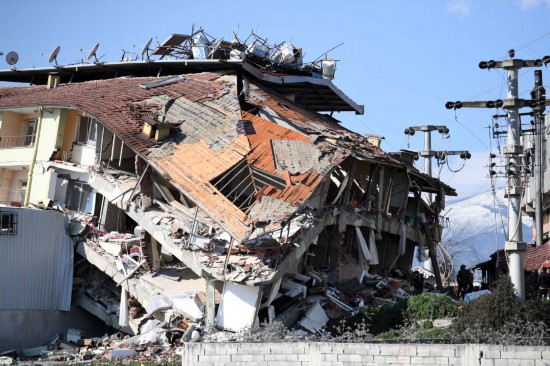 这是2月8日在土耳其哈塔伊拍摄的遭地震损毁的建筑。(新华社记者沙达提摄)