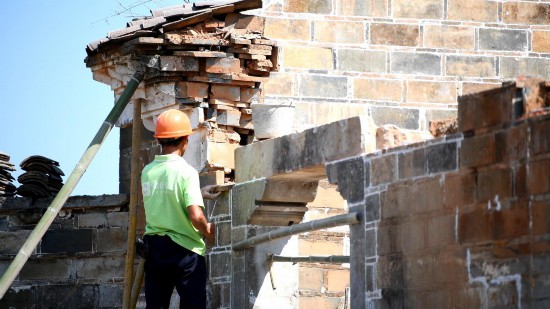 江西金溪县传统村落保护与发展协会秘书长徐国逊表示,经过近2个月的修复,“三公旧第”门楼修复工程目前已顺利通过验收:我们要求要有老砖,比如雕花都是手工雕花,请雕花师傅去现场雕花;比如该盖的瓦,我们要求原原本本按照以前的购买一些铜钱瓦。虽然是很难,有些材料很难找得到,但是通过施工方的努力,按照我们要求去找这些材料,尽量用老材料、传统工艺恢复到以前的样子,就是“修旧如旧”一个概念。