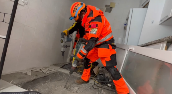 有一处救援点难度很大,是在一处斜楼的楼板里。据当地人反映,楼里还有一名15岁的男孩没被发现。受条件限制,我们需要轮流作业,用基础工具在2楼打穿楼板到1楼,才能确认有没有生命迹象。然而,这次的救援结果依然让我们感到揪心。