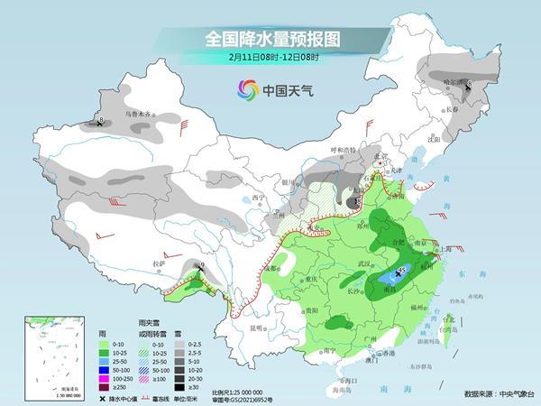 今天(2月11日)开始至14日,新一股较强冷空气将影响我国,中东部大部地区有4~8℃降温,局地10℃以上,江南等地前后冷暖反差较大。降温的同时,大范围雨雪天气也将展开,西北地区东部、华北等地又有降雪,南方阴雨持续。