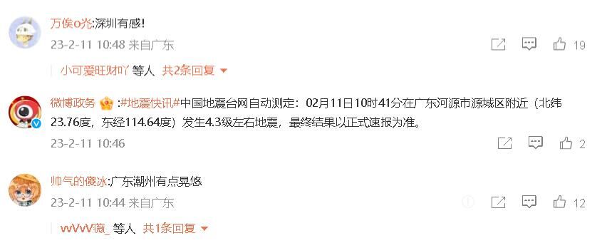 据网友反馈,广州深圳等地有震感。