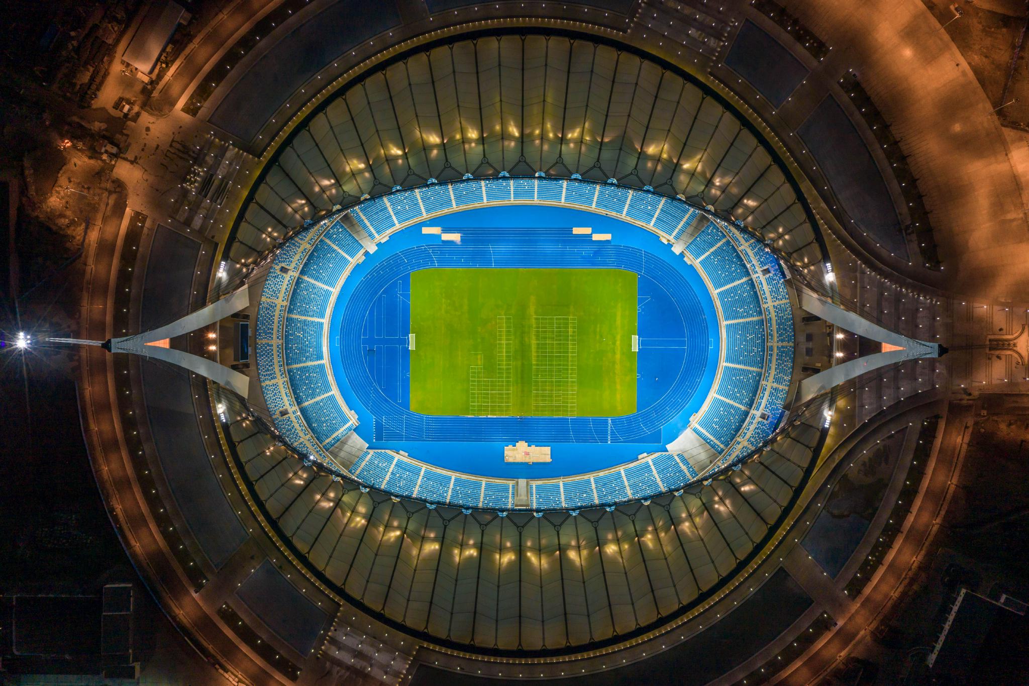 这是2021年9月9日在金边拍摄的柬埔寨国家体育场(航拍照片)。
