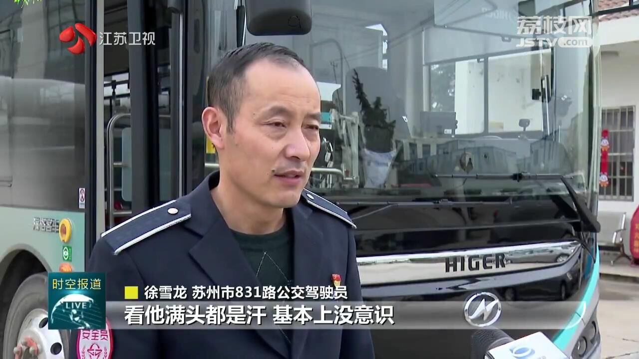 苏州市831路公交驾驶员徐雪龙说:“后来我马上停车,停车以后去看了一下他的情况,看他满头都是汗,基本上没意识,昏昏沉沉的。”