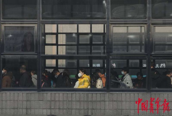 2月10日,北京西站,旅客排队准备检票进站上车。中青报·中青网记者 陈剑/摄