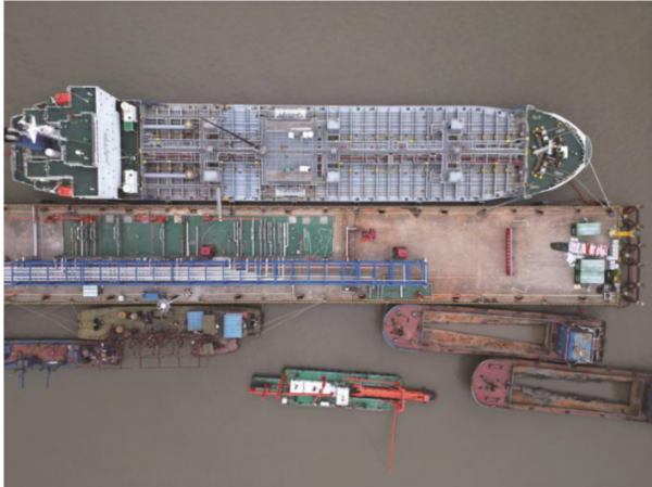 正在作业中的泰州港泰兴港区过船作业区金燕仓储液体化工码头。 敏丽供图