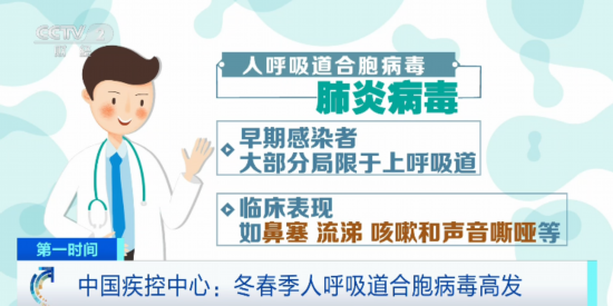 人呼吸道合胞病毒是一种肺炎病毒,早期感染者大部分局限于上呼吸道,临床表现如鼻塞、流涕、咳嗽和声音嘶哑等;少部分可以发展为下呼吸道感染,主要表现为毛细支气管炎或肺炎,多见于2岁以下婴幼儿,严重者可发展为呼吸衰竭,甚至导致死亡。