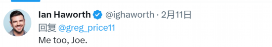 报道说,《华盛顿观察家报》专栏作家伊恩·霍沃思发推回应拜登的言论,配文是:“我也是,乔。”↓