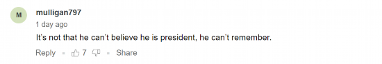 还有网友说,“他不是不相信自己当上了总统,而是不记得了。”
