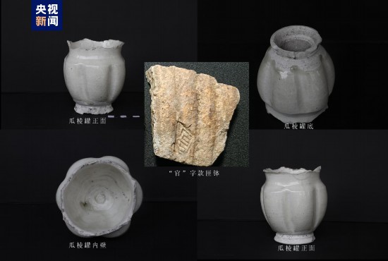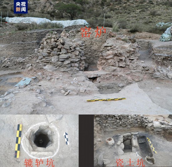 苏峪口瓷窑遗址面积约4万平方米,发现窑炉13处,外围的山坡上还发现了开采瓷土、煤、石英、石灰等制瓷原料与燃料的矿坑。此次考古工作发掘了一、二号(Y1、Y2)两座窑炉。Y1与Y2为马蹄形半倒焰馒头窑,用条石垒砌,由火膛、窑室、烟囱和两侧挡墙等组成。作坊遗迹两窑炉共用,以煤为燃料,有储泥池、辘轳坑、釉料缸、存贮间等。窑具以直筒型瓷质匣钵为主。烧制时均用匣钵正烧,匣钵之间用釉封口。瓷器产品主要为精细白瓷,以碗、盘、盏、碟等日用器为主,另有花口瓶、执壶等大型器物及建筑材料等。胎白细腻,釉色温润、白中微泛青,玻璃质感和透光性强。根据出土器物判断,Y1与Y2为西夏时期,始烧于西夏早期偏晚。遗址内发现了多件“官”字款匣钵,可推断为西夏宫廷用瓷的烧造地,具有西夏“官窑”的性质。
