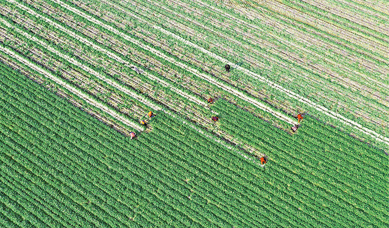 近年来,四川省南充市蓬安县积极引导沿江群众将荒置河滩地进行开垦改良,发展蔬菜种植业,带动农业增效、农民增收。图为2023年1月31日,蓬安县锦屏镇中坝社区沿江蔬菜种植基地里,菜农们正忙着采收萝卜。 人民图片 周亮/摄