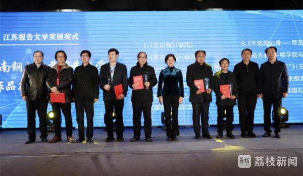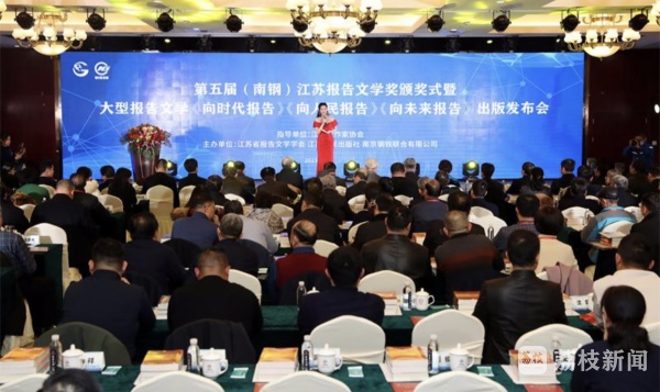 昨天(2月16日),第五届(南钢)江苏报告文学奖颁奖式暨大型系列报告文学《向时代报告》《向人民报告》《向未来报告》出版发布会在南钢宾馆隆重举行,10 位作家获得第五届(南钢)江苏报告文学奖奖杯。