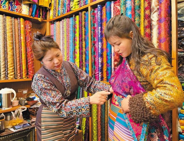 除了置办各类年货,大多数藏族群众都会选择定制一套新款藏装,从大家熟知的措美林藏装一条街到分布在大街小巷的各类大小规模不一的藏装店,都迎来了藏装定制热潮,各类布料琳琅满目、颜色绚丽,店员们给顾客们选布料、量尺寸、介绍款式,忙得不可开交。
