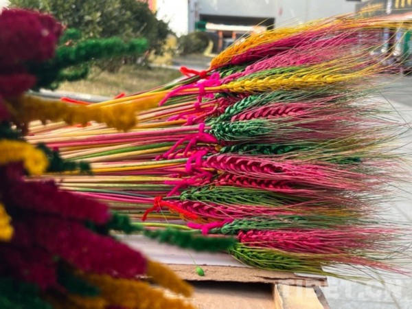 图为年货市场里的“罗萨梅朵”(青稞穗) 摄影:德吉卓玛