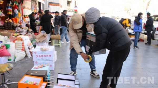 中国西藏网讯 临近藏历新年,家家户户忙于置办年货。2月10日,记者来到位于西藏拉萨市的八廓商城、冲赛康、雪新村等各年货市场,各店铺早已备好精品年货,前来选购的市民络绎不绝,现场十分热闹。商品琳琅满目,切玛盒、香布、德嘎等藏历新年吉祥物“一家子”更是藏族群众每年家家必备的年货。(中国西藏网 记者/德吉卓玛 次旦拉姆)
