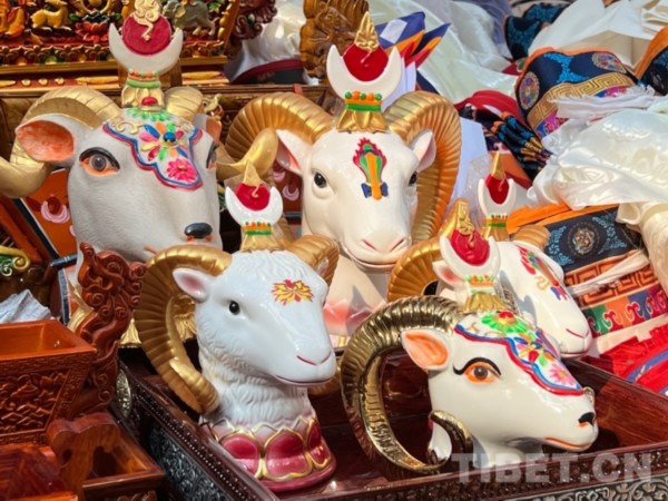 图为年货市场里的“隆果”(吉祥羊头) 摄影:次旦拉姆
