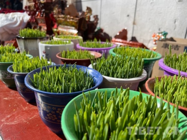 图为年货市场里的青稞苗 摄影:德吉卓玛
