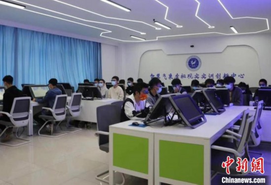2021年10月,兰州资源环境职业技术大学气象专业学生开展虚拟仿真实训。(资料图) 兰州资源环境职业技术大学供图