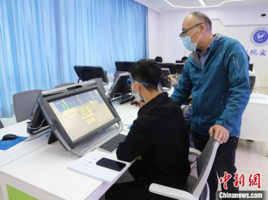 2022年9月,兰州资源环境职业技术大学老师指导学生开展虚拟仿真实训。(资料图) 兰州资源环境职业技术大学供图