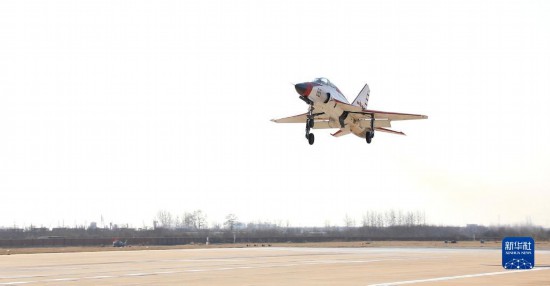 海军航空大学某基地组织学员开展陆基模拟着舰训练,学员驾驶飞机触地后拉升(2023年2月20日摄)。新华社发(李姗 摄)